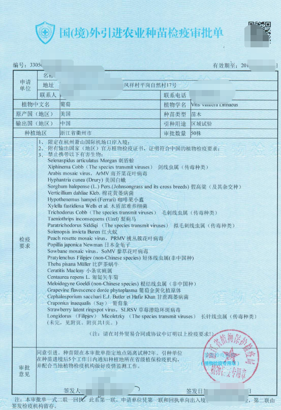 国(境)外引进农业种苗检疫审批单